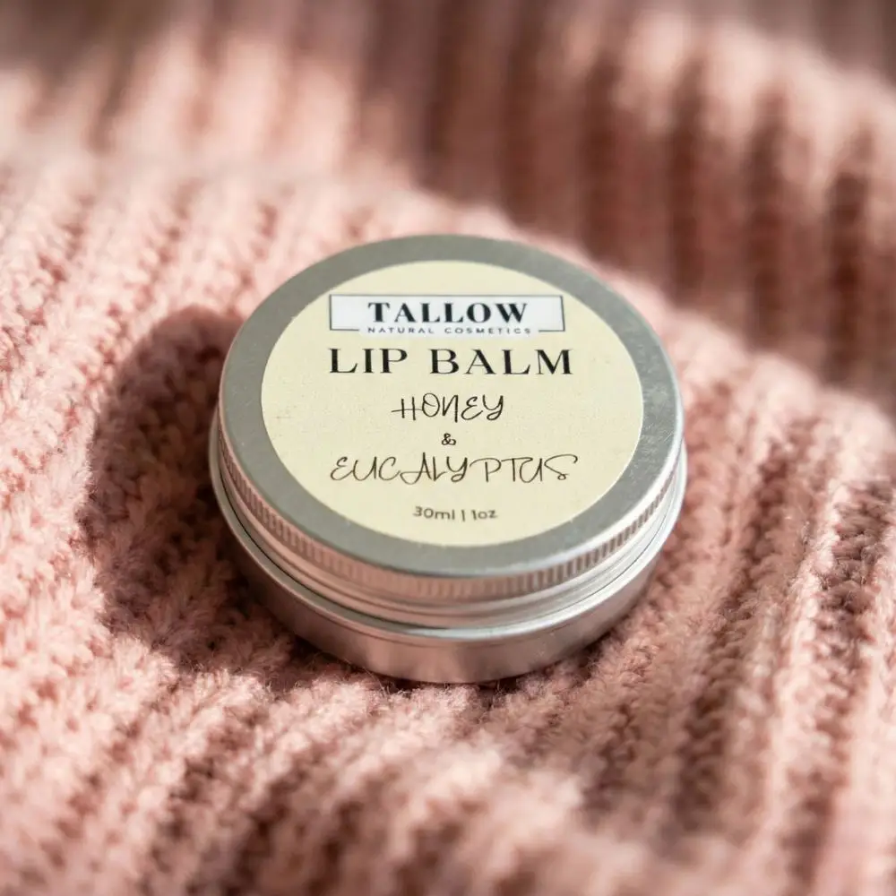 Tallow and honey lip balms provide deep nourishment, intense hydration, and long-lasting protection for dry, chapped lips. They combine the rich fatty acids and vitamins (A, D, E, and K) found in tallow, which help repair the skin barrier, with honey’s moisture-attracting and antimicrobial properties. This powerful combination soothes inflammation and promotes natural healing, making it an effective, natural alternative to synthetic balms.